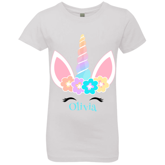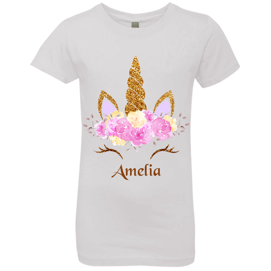 Personalized Customized Girl Name Unicorn Flowers Head Shirt | Girls' Princess T-Shirt