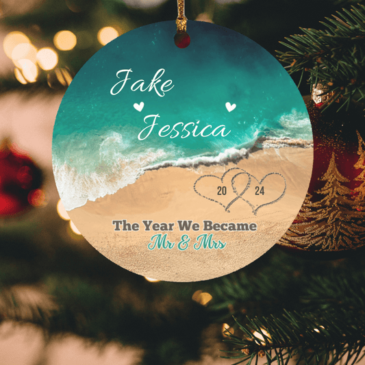 Personalized Couple Beach Ornament - The Year We Became Mr and Mrs