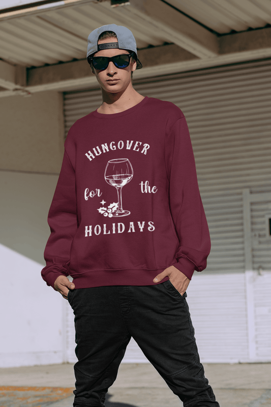 Hungover For The Holidays Crewneck Pullover Sweatshirt | Ugly Christmas Sweater