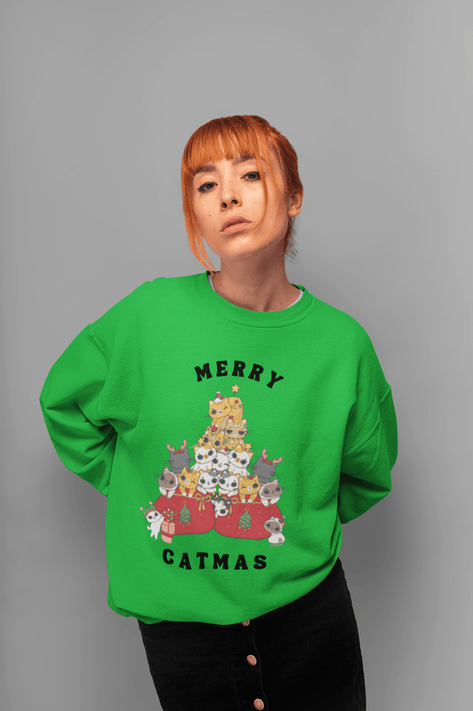 Merry Catmas Crewneck Pullover Sweatshirt | Ugly Christmas Sweater