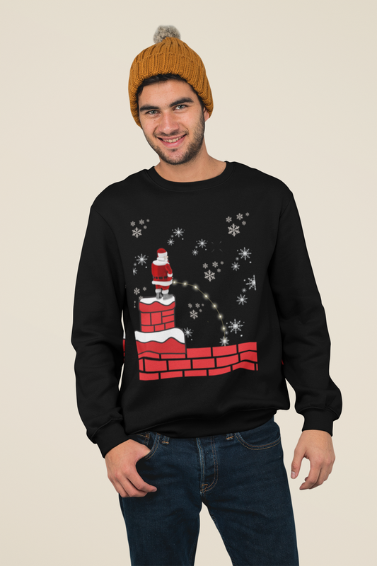 Santa In The Roof Crewneck Pullover Sweatshirt | Ugly Christmas Sweater