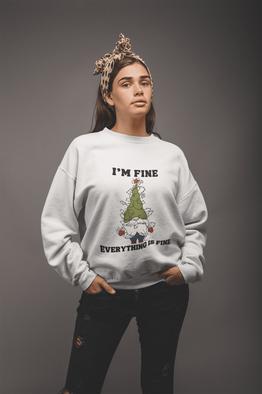 I'm Fine Everything Is Fine Crewneck Pullover Sweatshirt | Ugly Christmas Sweater