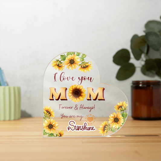 I Love You Mom You Are My Sunshine Printed Heart Acrylic Plaque