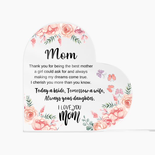 I Love You Mom From Daughter Printed Heart Acrylic Plaque