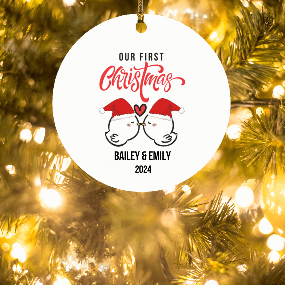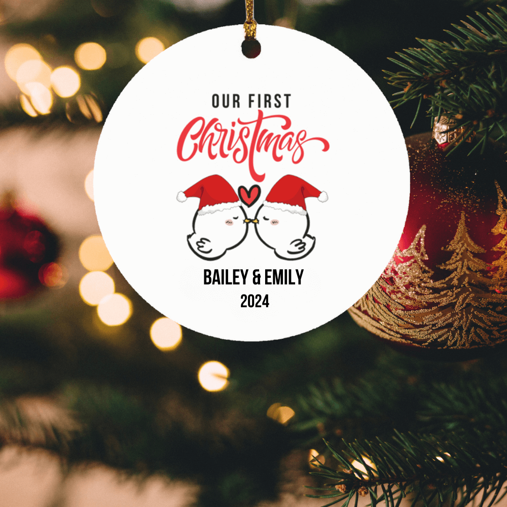 Personalized Couple First Christmas Love Birds Ornament